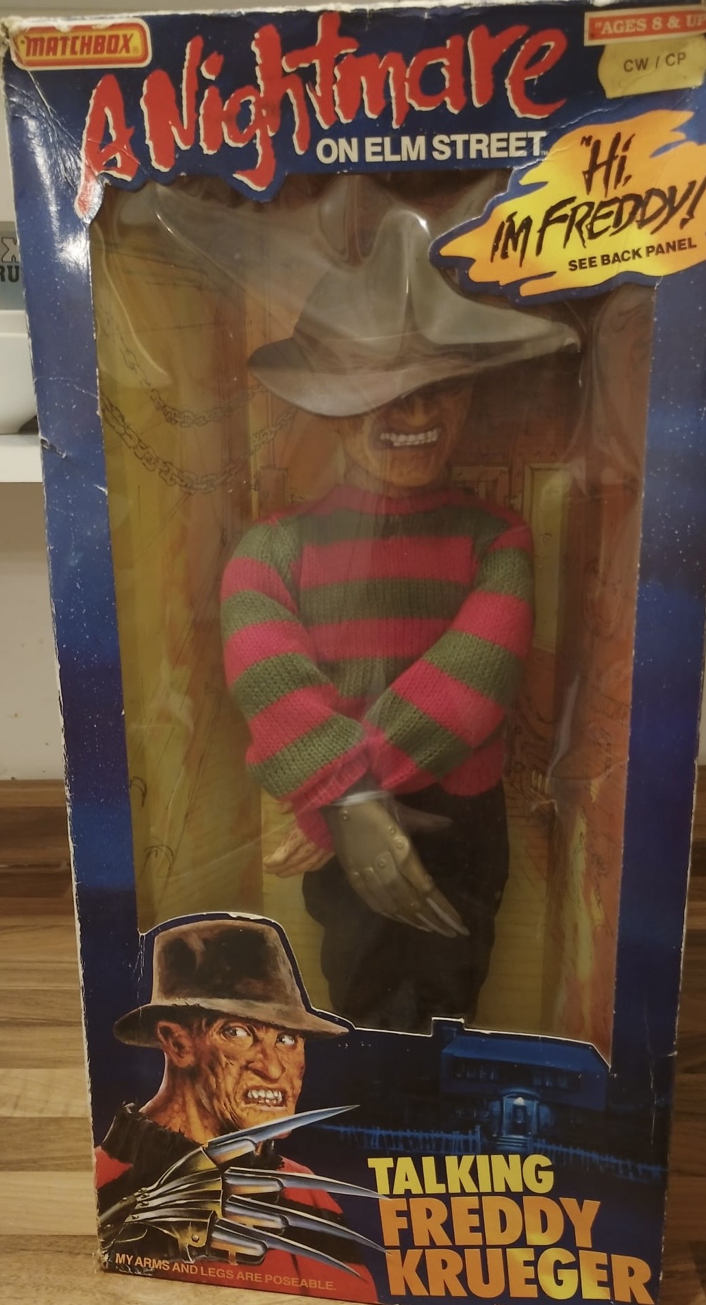 The Freddy Krueger plush/talking doll by Matchbox was released in 1989 and based on the character from A Nightmare on Elm Street.